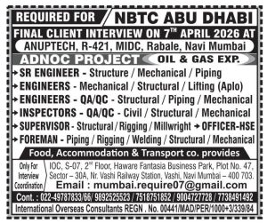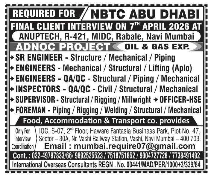 REQUIRED FOR NBTC ABUDHABI ADNOC PROJECT