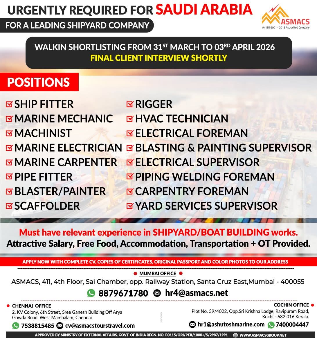 URGENTLY REQUIRED FOR SAUDI ARABIA JOB